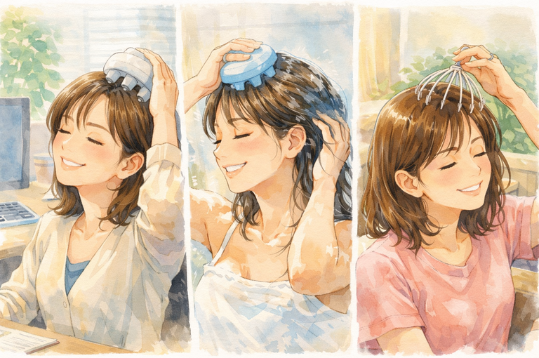 ヘッドマッサージグッズおすすめは「悩み別」で決まる|首肩こり・眼精疲労・頭皮汚れ